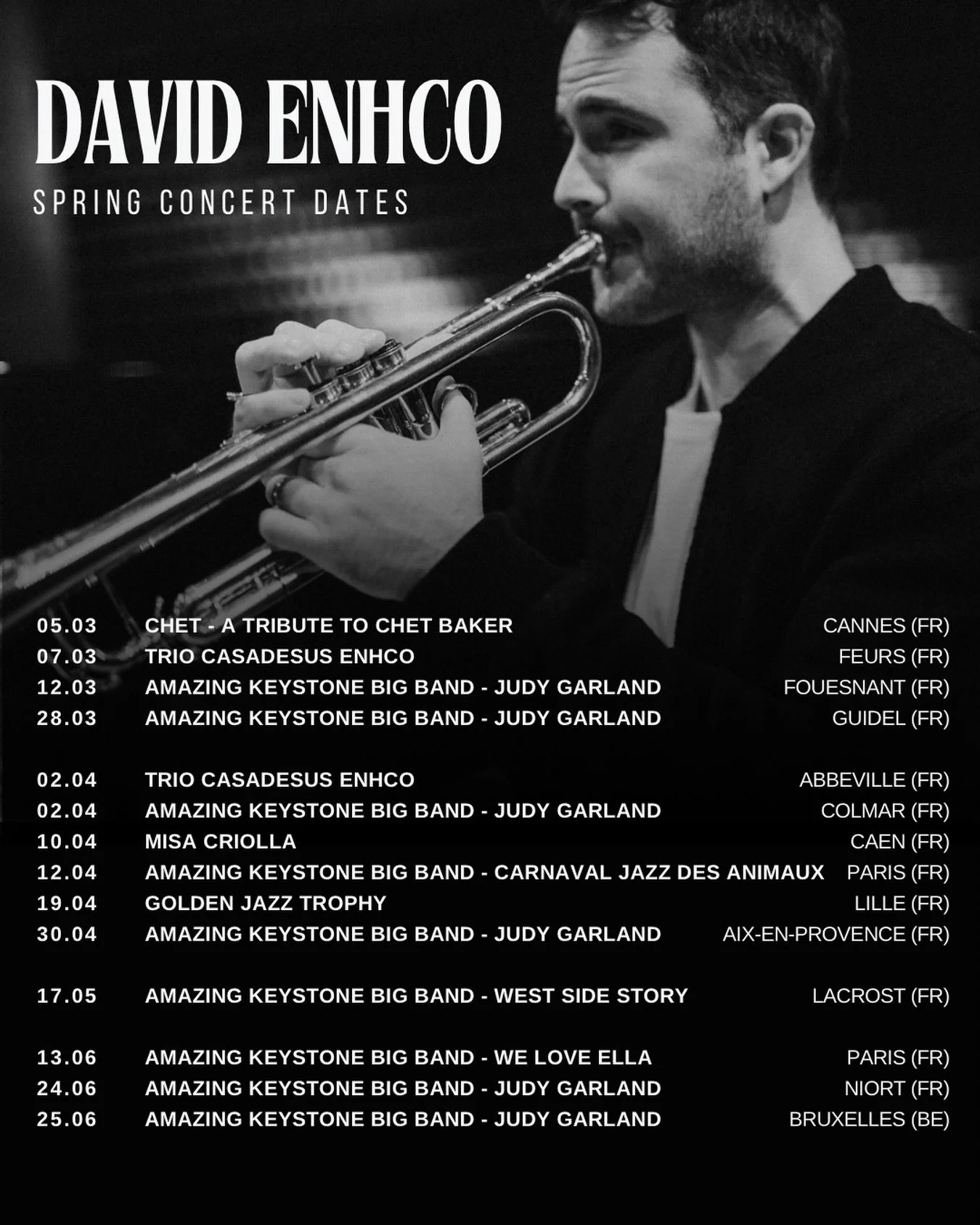 Sortie le 1er février 2019 et concert à Paris, au Café De la Danse le 13 avril 2019. Notez le aussi dans vos agendas :)Les tournées des prochains mois s'articulent atour de mes différents projets : avec le Trio Casadesus Enhco (18 et 21 septembre, 13 octobre et 16 novembre), avec Aksham (08 septembre, 20 octobre et 02 décembre), avec mon quartet (07 octobre), en duo avec mon frère Thom Enhco (14 septembre, 11 octobre), et avec le Keystone Big Band, avec Jazz Loves Disney (22 et 29 septembre, 22 et 23 décembre), avec notre hommage au génial Léonard Bernstein dans West Side Story (12, 16 et 19 octobre, 03 novembre, 19 décembre), avec Monsieur Django et Lady Swing (04 octobre, 24 et 30 novembre, 16 décembre).